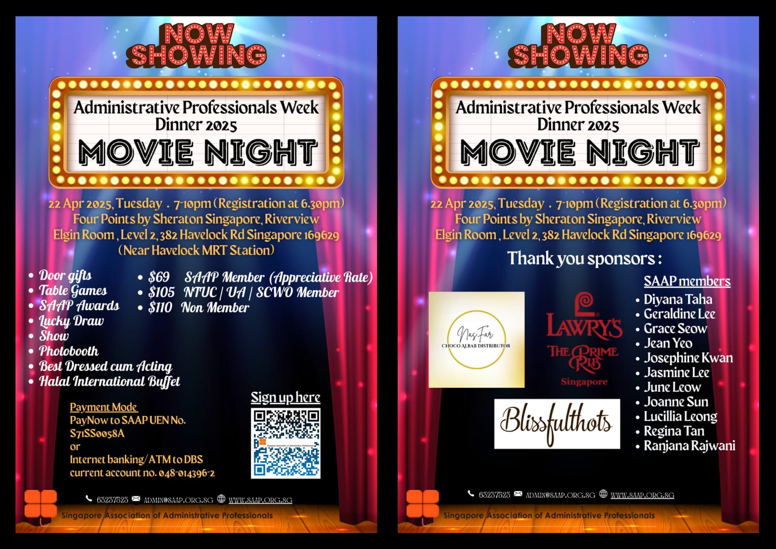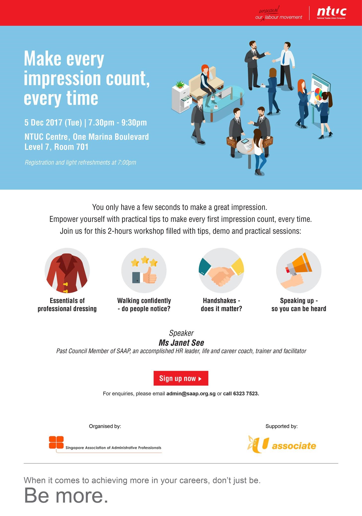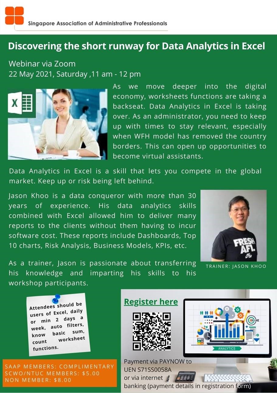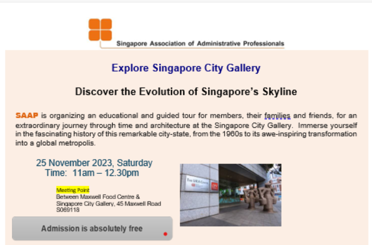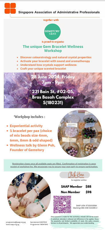 Super User Past Events and Other Activities 2025 Management Council Installation (MCI) Ceremony in conjunction with Fellowship Day/1 Nov 2025 Make-Up Workshop by Sephora – 1 Jun 2025 Musical Box Workshop – 24 May 2025 Administrative Professionals Seminar 2025 - Assistants of Tomorrow: Shaping the Future of Work - 25 Apr 2025 Administrative Professionals Week Dinner – Movie Night / 22 Apr 2025 Complimentary Webinar – Essential tips for Administrative Professionals at workplace – 10 Mar 2025 Lo Hei Dinner – 7 Feb 2025 Chengdu 6D5N Tour – 4 to 9 Jan 2025 2024 Management Council 2024/2025 Installation Ceremony – 23 Nov 2024 How Generative AI is Changing the game for Administrative Professionals (Complimentary Webinar) - 26 Jul 2024 The Unique Gem Bracelet Workshop Wellness Workshop – 28 Jun 2024 Administrative Professionals Day Dinner - Hawaiian Night - 24 Apr 2024 Complimentary Workshop - Looking Poised and Stylish by Rose of Sharon - 16 Apr 2024 Administrative Professionals Day Workshop - Emotional Intelligence at Work, Navigating Relationships for Success – 16 Apr 2024 Lo Hei dinner - 17 February 2024 2023 Explore Singapore City Gallery – 25 November 2023 Management Council 2023/2024 Installation Ceremony – 28 October 2023 Administrative Professionals Day Dinner – 26 Apr 23 Administrative Professionals Week workshop – Impactful Skills and Mindfulness Approach to Success– 18 Apr 23 Lo Hei dinner 2023 - 27 February 2023 2022 Management Council 2022/2023 Installation Ceremony – 12 November 2022 Administrative Professionals Day Dinner – 27 Apr 22 Administrative Professionals Week workshop – Red Wine? White Wine? – 27 Apr 22 Active Ageing – 15 Jan 2022 2021 Children Wishing Well CSR programme – Dec 2021 Honouring the Past, Celebrating the Present, Inspiring the Future via Zoom - 31 July 2021 Discovering the short runway for Data Analytics in Excel - 22 May 2021 Administrative Professionals Week - Introduction to CANVA - 20 April 2021 Lo Hei dinner 2021 - 20 February 2021 Live Webinar - Feet Care - 9 January 2021 2020 Live Webinar - Liver Health and how it affects you - 5 December 2020 An Afternoon Baking Demo via Zoom with Lucy Tan - 7 November 2020 Management Council 2020/2021 Installation Ceremony - 31 October 2020 SAAP/Google Admin Professionals Virtual Workshop - Adapting for Remote Support - 17 July 2020 Webinar - Workplace Mental Health Workshop - 28 & 29 May 2020 Lo Hei dinner - 5 February 2020 2019 Management Council 2019/2020 Installation Ceremony – 02 November 2019 Essential Oil Benefit workshop – 17 August 2019 Batam One Day Tour – 20 July 2019 Administrative Professionals Week Closing Event - Picnic Party – 27 April 2019 Administrative Professionals Day Dinner – 24 April 2019 Administrative Professionals Week Workshop - Sun Tzu’s Art of War for Administrative Professionals – 23 April 2019 Communication Style - At your Best – 21 March 2019 Lo Hei Dinner 2019 – 15 February 2019 2018 Management Council 2018/2019 Installation Ceremony – 10 November 2018 SAAP HUONE Collaboration - Administrative Professionals Series – 12 October 2018 Building your Emotional Quotient (EQ) through Better Communication Skills – 19 July 2018 Personal Assistants/Admin Professionals Master Class – 27 April 2018 Administrative Professionals Day Dinner – 25 April 2018 Lo Hei Dinner – 28 February 2018 2017 Lo Hei 2017 - 8 February 2017 Administrative Professionals Day Dinner – 26 April 2017 Google Office Tour cum "The Office Superhero – Technology to help you fly" workshop - 5 May 2017 Beauty Talk, Care essentials for eyes and skin- 15 July 2017 Management Council 2017/2018 Installation ceremony – 28 October 2017 Talk – Make your impression count, every time – 5 December 2017