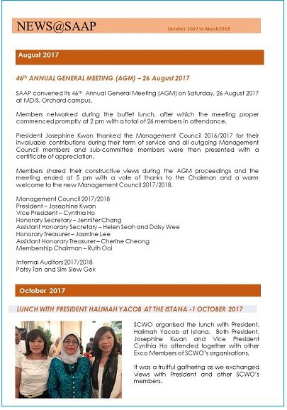 Super User Newsletter SAAP Membership Drive Campaign – 1 Nov to 31 Dec 2025 Newsflash - World Mental Health Day - 10 Oct 2025 Newsletter Flash Jul 2024 Apr 24 to Dec 24 Sep 23 to Dec 23 Feb 23 to Aug 23 Aug 22 to Jan 23 Jan to Jul 2022 May to Dec 2021 Jan to Apr 2021 Sep to Dec 2020 May to Aug 2020 Jan to Apr 2020 Oct to Dec 2019 Apr to Sep 2019 Oct 18 to Mar 2019 SAAP Management Council 2018-2019 Apr to Sep 2018 Oct 17 to Mar 2018 Jan to Mar 2017 Oct to Dec 2016